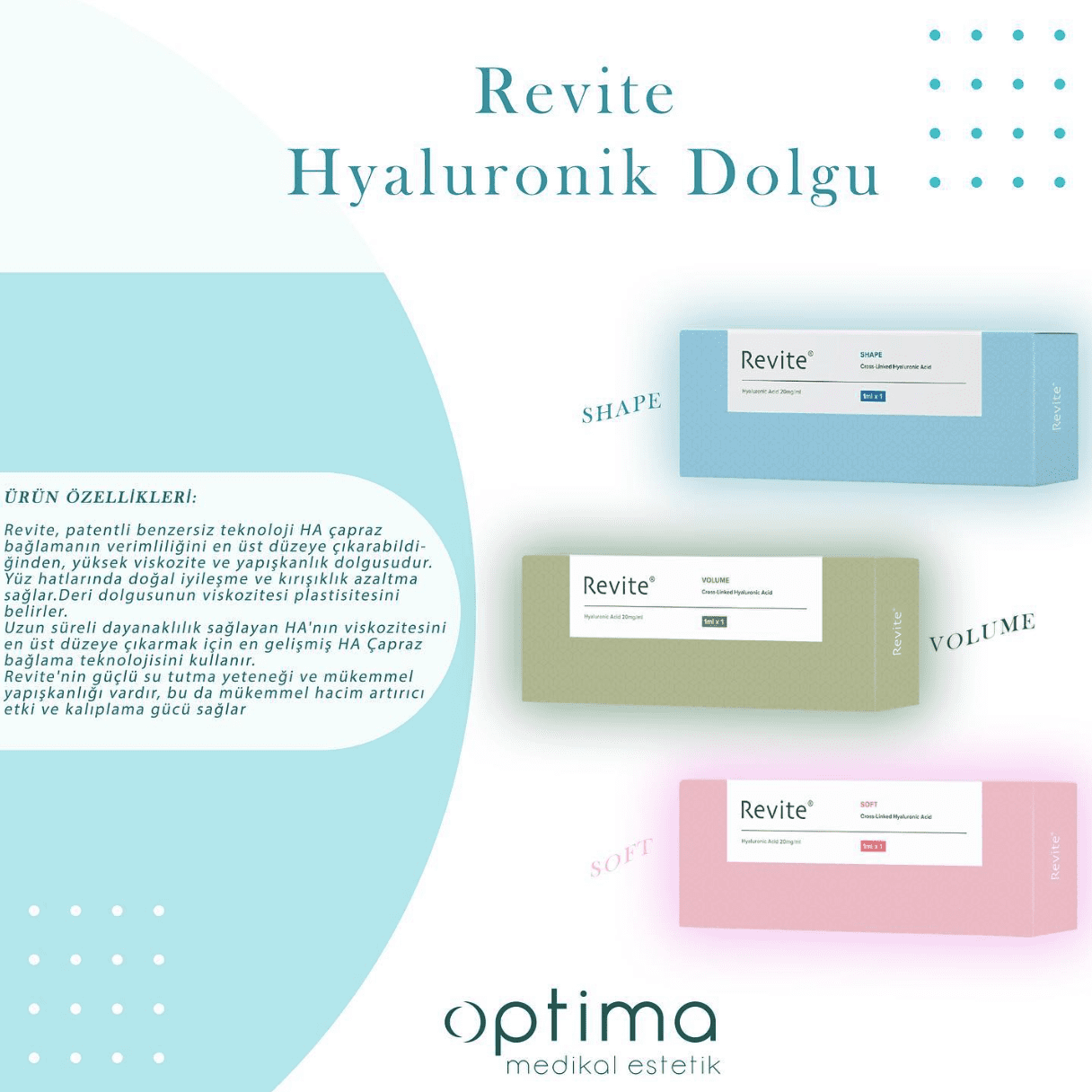 Revite, patentli benzersiz teknoloji HA çapraz bağlamanın verimliliğini en üst düzeye çıkarabildiğinden, yüksek viskozite ve yapışkanlık dolgusudur. Yüz hatlarında doğal iyileşme ve kırışıklık azaltma! İşlemden sonra yüksek düzeyde memnuniyet bekleyebilirsiniz.